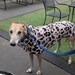 MEOW! Who doesn't love animal print! Made of plush medium weight fleece in Modern Leopard print with cowl neck collar (collar fits loosely). Perfect for fall walks to take the chill off or for wearing around the house on cold days. It is designed to fit longer and covers the rear (see size chart below). Velcro belly closure. No need to remove for potty breaks. Darted in all the right places for a beautiful fit.