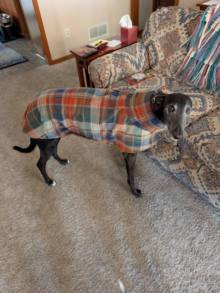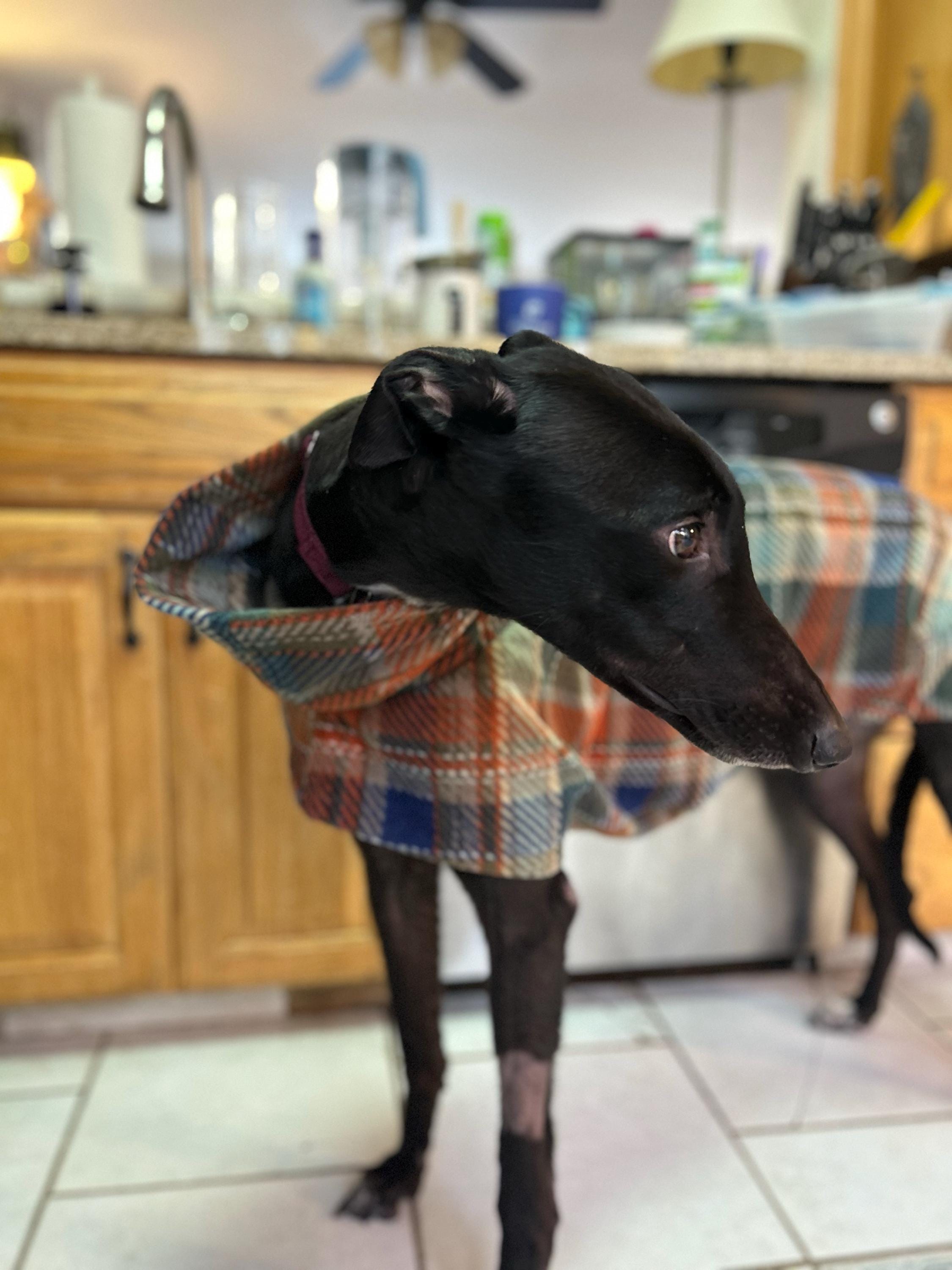 This is so cute oh my newly adopted greyhound. We didn’t know what color he would be but this is the perfect fall fit and everyone at the kennel wanted to know where it was from!