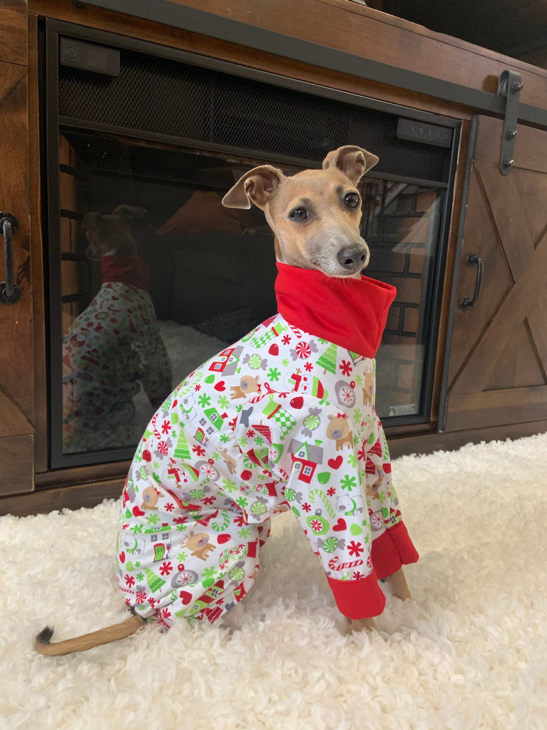 Italian Greyhound Clothing. Christmas Pajamas for Dog. Knit PJs for Iggy.